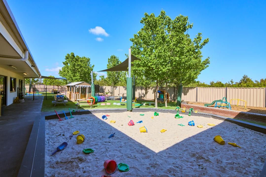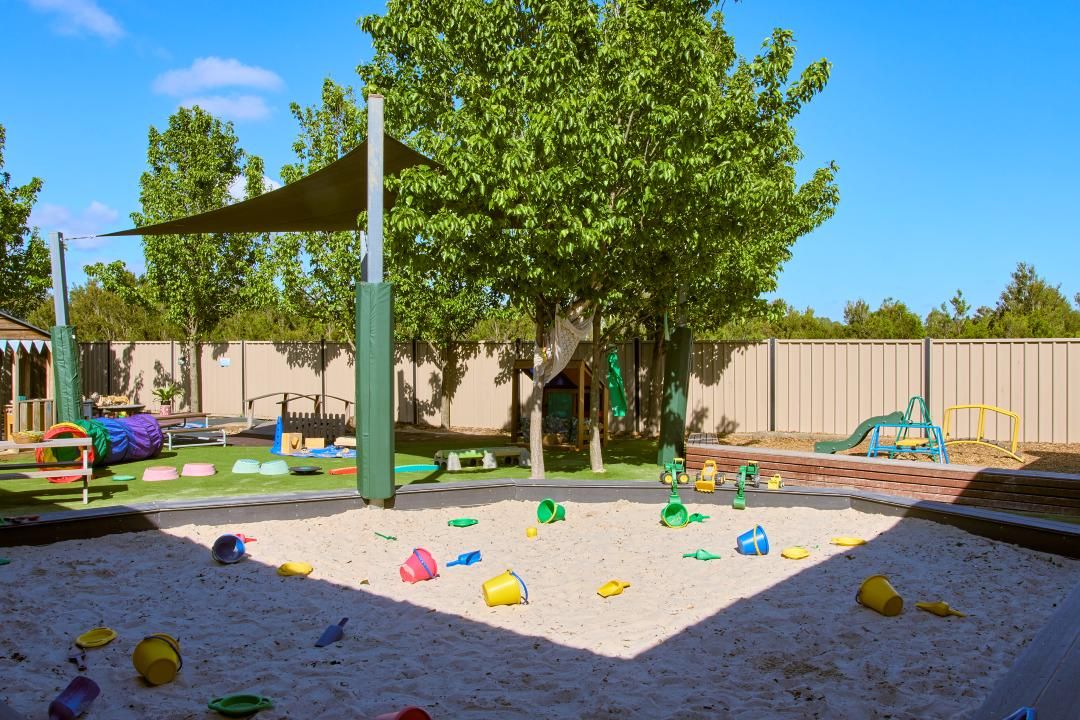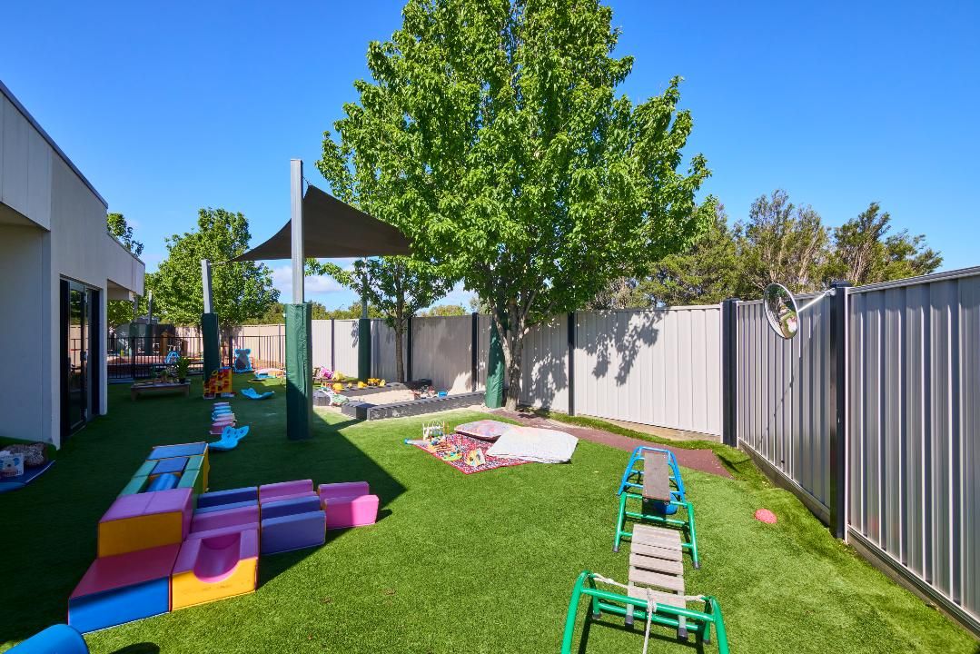 Our purpose-built daycare and kindergarten centre in Clyde North offers innovative early learning programs in a safe and nurturing environment. Our Clyde North childcare centre’s outdoor spaces feature sandpits, cubby houses, and ample room for setting up experiences that blend indoor and outdoor play. The outdoor space for kindergarten children includes a climbing fort and a sustainability area with plenty of natural trees for shade. Indoors, we use various age-appropriate natural resources, ensuring a nurturing environment. Our long-standing team of educators has extensive experience in building positive relationships with children and families. Our Bachelor-qualified Early Childhood Teacher delivers a Government-approved Kindergarten/Preschool program to prepare children for school. As part of the daily fee, we offer a weekly Little Sports Heroes program and a music program for our 3–5 year-olds.